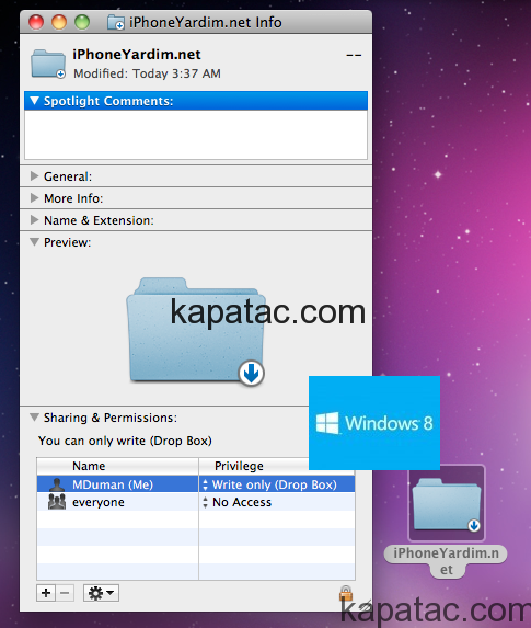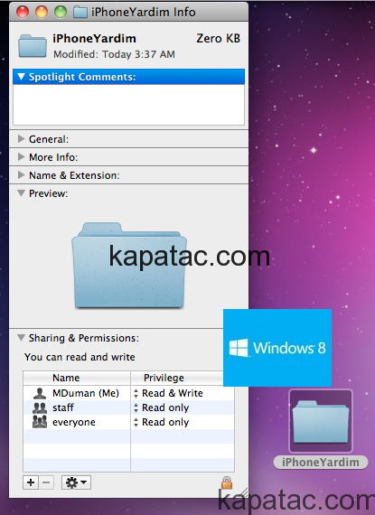İlgili klasöre sağ tıklayarak Get Info penceresini görüntüleyin.