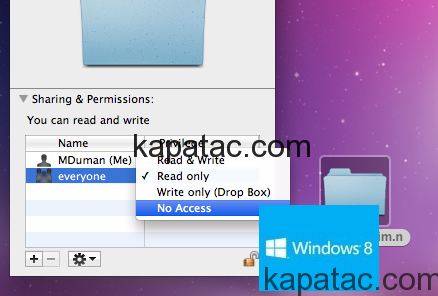 Privilege sütununda, Everyone: No Access şeklinde ayarlayın.