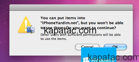 Klasör içerisine bir dosya eklemek istediğiniz zaman, klasöre dosya ilave edebileceğimizi fakat bu dosyayı klasör içerisinde görüntüleme yetkisine sahip olmadığımızı belirten bir uyarı mesajı ile karşılaşırız. Bu mesajı onaylayarak klasöre dosya ilave edebiliyoruz.